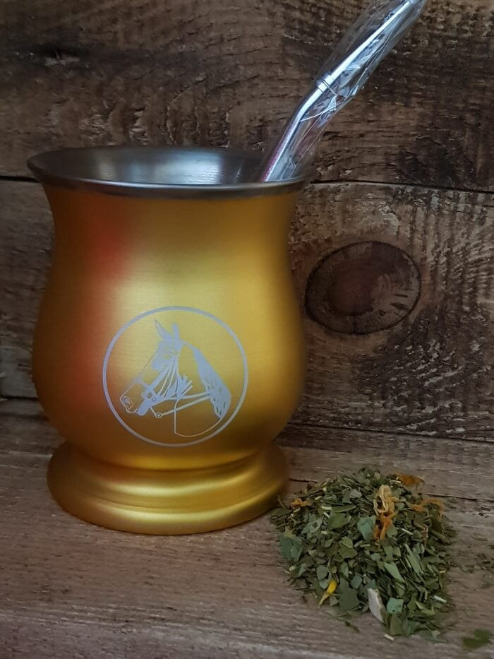 La Yerba maté se boit dans une calebasse grâce à un tube métallique qui sert aussi de filtre, la bomba. Pour le savourer les Gaúchos (dresseurs de chevaux) s'organisent en cercle où il passe de main en main selon un rituel très précis qui invite par exemple les participants à faire circuler la calebasse dans le sens anti-horaire afin de faire passer le temps moins vite.