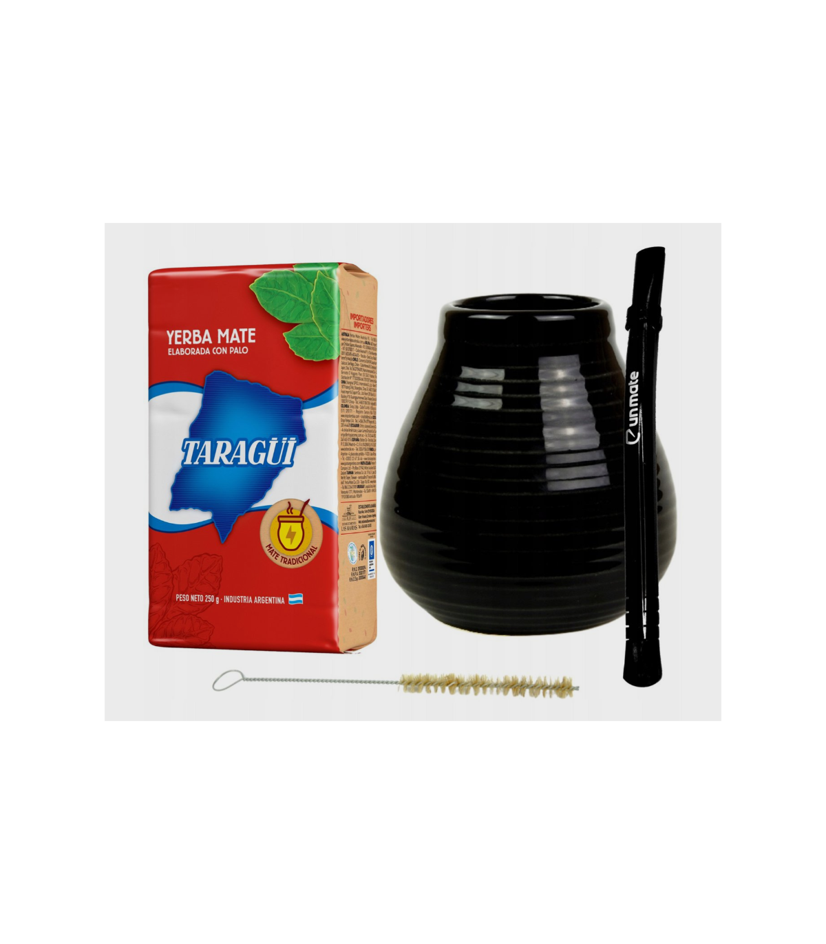 Kit de démarrage Yerba Maté comprenant - Calebasse en céramique, Bombilla, Goupillon et 250Gr de Yerba Maté.